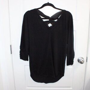 Deletta Black V-Neck Top with Cross Back Detail Half Sleeve Size Medium Black