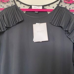 Delfi Black Dress With Ruffle Trim. Size Small. NWT
