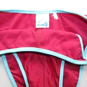 Beautiful crimson berry red trimmed out in sea turquoise.