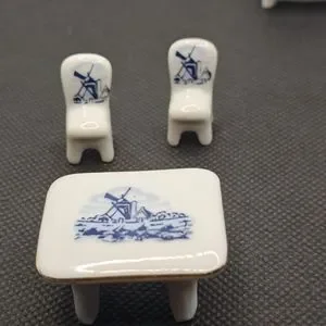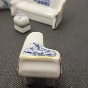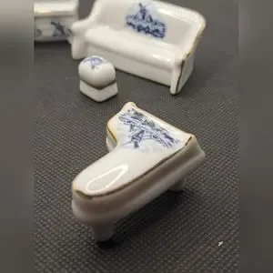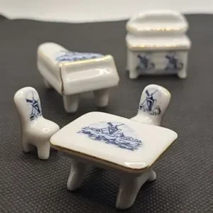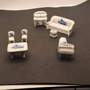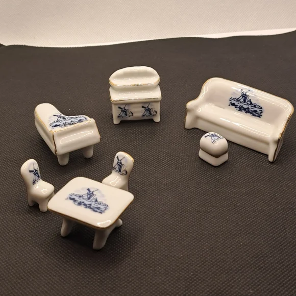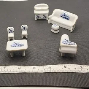 Delft Blue Miniatures 7 pieces of miniature furniture, porcelain living room. Made In Japan. Excellent condition. Thanks for visiting.