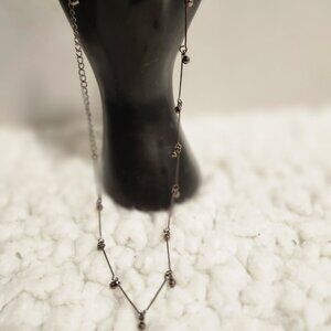 Elevate your everyday style with this delicate black costume necklace featuring smoky black beads for a subtle, sophisticated shimmer. With a 16-inch chain, this necklace sits gracefully at the neckline, making it perfect for layering or wearing alone as a minimalist statement piece.