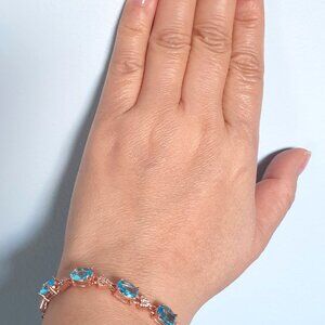 Delicate Created Blue Topaz Crystal Pink Gold Tone Stainless Steel Bracelet