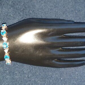 This bracelet boasts a stylish and delicate design, with 5 created blue topaz crystal gemstones to create a fashionable piece. The bracelet is suitable for anyone to wear.