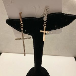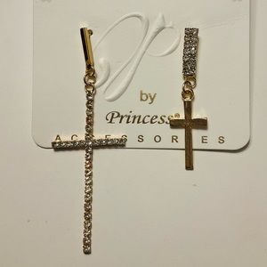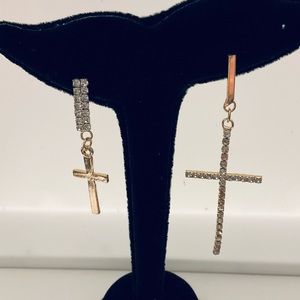 Delicate Divinity Asymmetric Rhinestones crystal Gold Cross Dangling Earrings