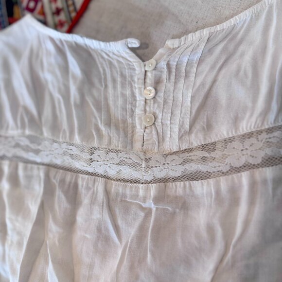 Short sleeve crew neck Ivory sheer lace front peplum top