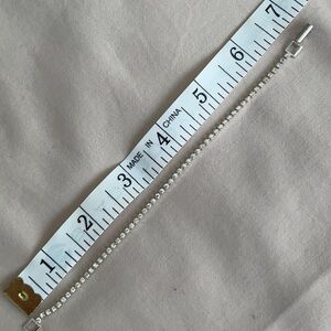 Enhance your look with this delicate and stunning silver rhinestone bracelet. Perfect for any occasion. Sparkles well in both day light or artificial light.