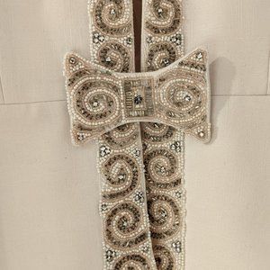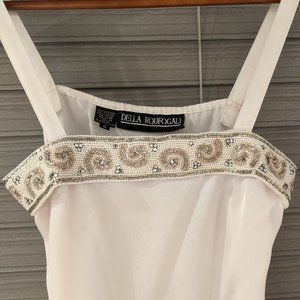 Della Roufogali Ivory Beaded Cocktail Wedding Blazer & Tank Top Set Size…