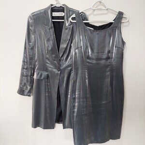 Della Spiga Metallic Dress And Long Blazer Set, Size 10/12