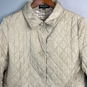 Della Spiga Quilted Barn Jacket Oatmeal Cream Button Front Collar Pockets Size small