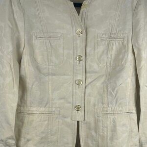 Delmod Blazer Jacket Size 8 Creamy White Long Sleeve Button Up Floral Pattern