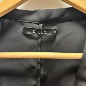 I love this top but it’s not my size. Beautiful satin with crop fit and long sleeves. Slightly sheer. Buttons on front.