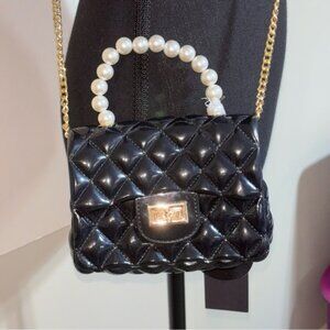 Deluxity Black Quilted Women's Bag Purse Mini Jelly PVC Pearl Handle Chain
