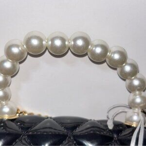 Elevate your style with the Black Quilted Women's Bag. Featuring a chic quilted design and elegant gold accents, this bag is perfect for any occasion. The pearl handle adds a touch of sophistication.