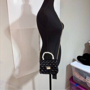 Elevate your style with the Black Quilted Women's Bag. Featuring a chic quilted design and elegant gold accents, this bag is perfect for any occasion. The pearl handle adds a touch of sophistication.
