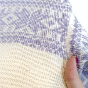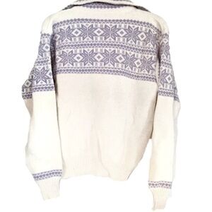 Demetre Wool Fair Isle Sweater Nordic Purple Creme Snowflake Ski Vintage Ribbon