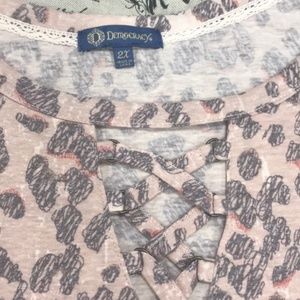 A sketched leopard print adds a fun, unique look to the classic animal print while a lattice detailed bust and cold shoulders add a fun exposure of skin.