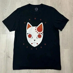 Demon Slayer Kimetsu no Yaiba Tanjiro Warding Mask Black T-Shirt Men's Large Japanese Manga