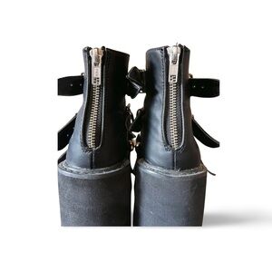 Bold black platform ankle boots. Features multiple buckle straps. Perfect for a statement look. Worn 1 time. Condition like new.