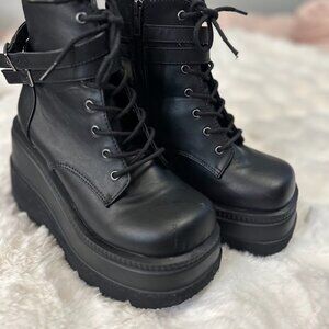 Demonia Shaker 52 Platform Wedge Lace Boots