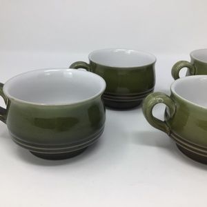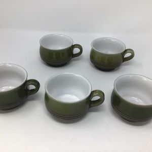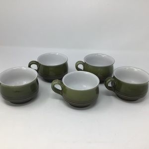 Denby Painter’s Pallet Green (retired) Stoneware coffee/tea mugs x5