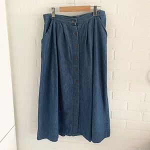 Elevate your style with this chic denim blue button-front skirt. Perfect for casual outings or a day at the office.