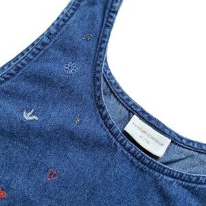 Denim Chambray Maxi Dress Jumper Noah's Ark Embroidery 90s Cotton Casual XL