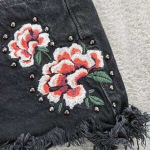 Denim Co Shorts Womens 10 Floral Embroidered Black Denim Hot Pants Distressed