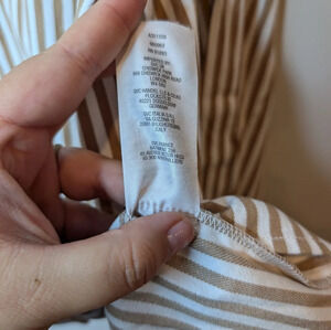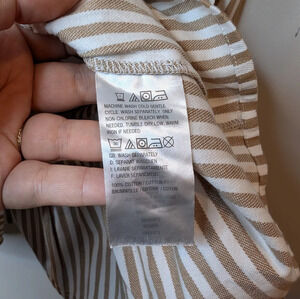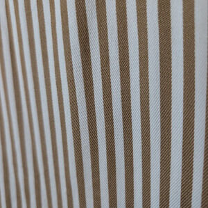 The yarn-dyed striped pattern in brown and white creates a unique and eye-catching look.