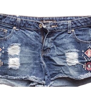 Stylish denim shorts featuring intricate embroidery. Perfect for casual outings.