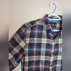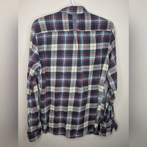 Denim & Flower Flannel Collection Plaid Button Down Blue Red White Mens Slim M
