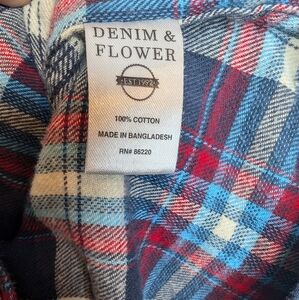 Embrace timeless style with this classic plaid flannel shirt from Denim & Flower (size Medium).