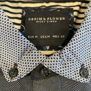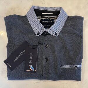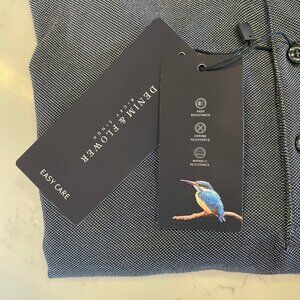 Denim & Flower Ricky Singh Easy Care 3 Button SS Poly Polo Shirt Blue Sz M NWT