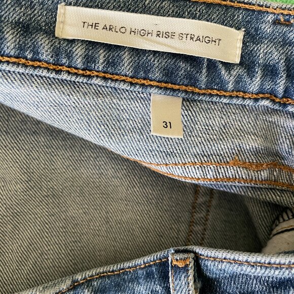 Selling a pair of Denim Forum Aritzia Arlo High Rise Straight Button Fly Raw Hem jeans-Size 31. Super nice fit. Ankle length. 98% organic cotton, 2% Elastane. Gently used.