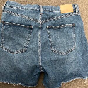 Aritzia's Denim Forum button-fly denim shorts with distressed hem. medium wash. Excellent used condition - bought end of May and worn twice- just the wrong size! Paid $88 plus tax. Tag says: The '50s Arlo Hi Mid-Thigh Short