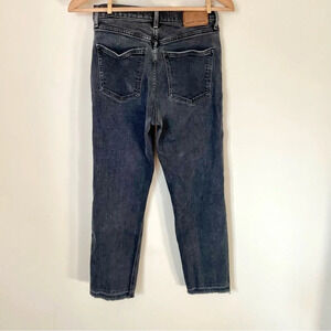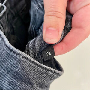 Denim Forum Arlo High Rise Straight Cropped Raw Hem Denim Jeans In Black. Inspired by visionaries who spoke simply (and said everything), The Arlo is Denim Forum’s signature straight-leg jean. Arlo’s classic fit, easy high rise and ankle-length hem are designed for an effortless look. They’re made with premium Italian regenerative cotton denim that has just a hint of stretch. This version comes in a washed black with a raw hem. Size 26. Good used condition.