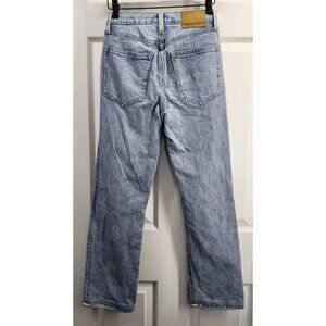 Denim Forum Arlo High Rise Straight Jeans Womens 24 x 25 Blue Stretch Button Fly