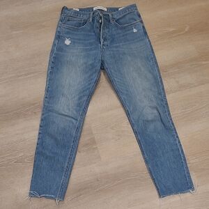 Stylish cropped jeans. Classic blue denim. Perfect for casual wear.
