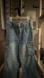 Classic blue denim with cargo style. Features multiple pockets.