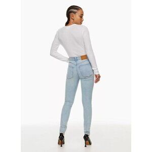 Inspired by the innate charisma of a rock n’ roll frontwoman, The Lola is a cult favourite and Denim Forum’s signature high-rise skinny. The Lola is fitted through the hip and thigh with a skinny leg that hits at the ankle. Innovative contouring pockets and Best Asset fabric hug here and lift there, creating curves in all the right places. They’re made with premium Italian cotton denim that just gets better with time — the denim equivalent of classic rock. This version comes in a light indigo wash with a clean hem.