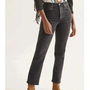 Denim Forum The Arlo High Rise Straight Black Denim Button Fly Jeans Size 26