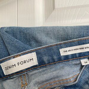 The Arlo is Denim Forum’s signature straight-leg jean. Arlo’s easy high rise and below-ankle fit are designed for an effortless look. Premium Italian organic cotton denim. This version has a clean hem and comes in a medium indigo wash.