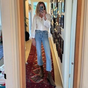 Denim Forum The Bailey Crop Flare Capri Mid Rise Denim Jeans Pants