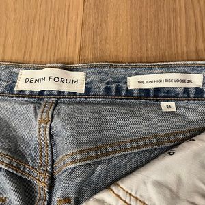 Denim Forum The Joni High Rise Loose 29L 25W, Fit is fun and loose and great wth a thick pair of army boots. Barley worn. I am normally a size 27 in jean these fit way smaller. I am in the picture wearing them for reference.