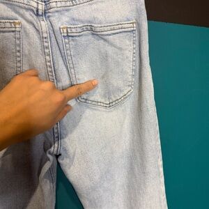 These Denim Forum skinny jeans feature a flattering high-waisted design in a soft blue color. The form-fitting silhouette tapers to a narrow ankle, offering a sleek and modern look. Crafted with a touch of stretch, they ensure comfort and ease of movement for any occasion.