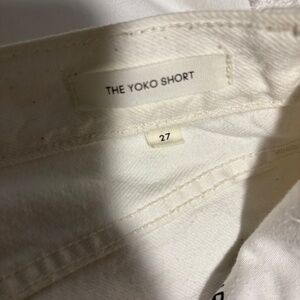 Denim Forum Yoko shorts in white, size 27. High-rise fit with raw hem. In great condition, no major flaws. Perfect summer basic — goes with everything 🤍