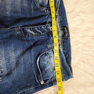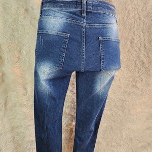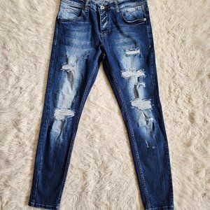 Check out this Denim House Men's Blue Slim Fit Fly Buttons Distressed Ripped Denim Jeans in excellent pre-owned condition, no stains on it.