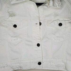 Off-white denim, distressed, 2 pockets on front