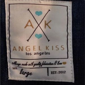 Lightweight Denim Jean Jacket in size large, but in my opinion it fits more like a medium. It has a a studded cross in the back as pictured. It is in great condition!