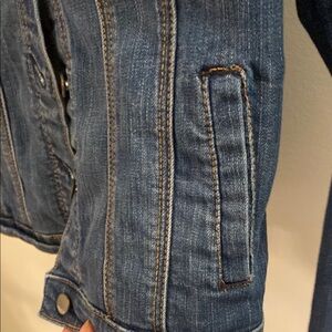 Classic denim jacket. Button-up front. Stylish and versatile.