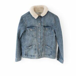 Topshop Shearling Denim Jacket – Women’s US Size 8 – Classic Blue Wash